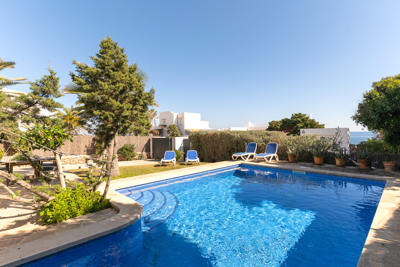 | Der ca. 9 x 4 m große und zwischen 1 und 1,70 m tiefe Pool bietet jederzeit eine willkommene Erfrischung. Damit Sie anschließend auch die mallorquinische Sonne in vollen Zügen genießen können, stehen auf der Rasenfläche rund um den Pool Sonnenliegen bereit. Machen Sie es sich bequem und relaxen Sie mit einem guten Buch oder lassen Sie einfach entspannt das mediterrane Ambiente auf sich wirken. |