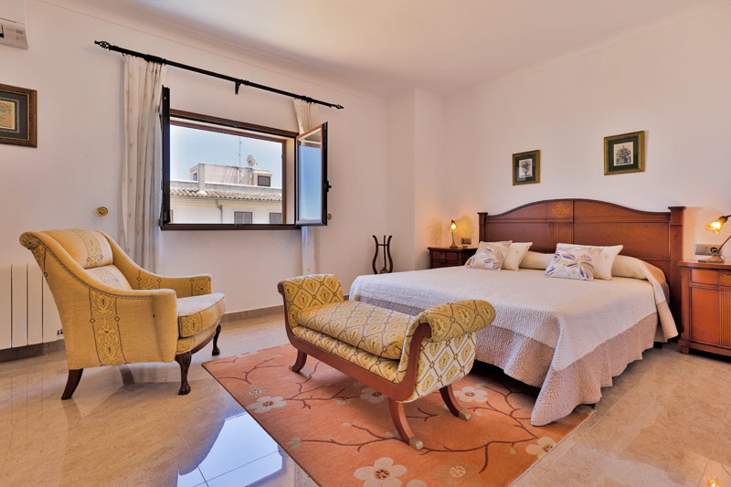 | Das Schlafzimmer im Erdgeschoss ist mit einem ca. 1,50 x 1,90 m großen Doppelbett ausgestattet. Es verfügt zudem über ein Bad ensuite mit Badewanne, Waschbecken, Bidet und WC. In allen Schlafzimmern sorgt die Klimaanlage für erholsamen Schlaf. |