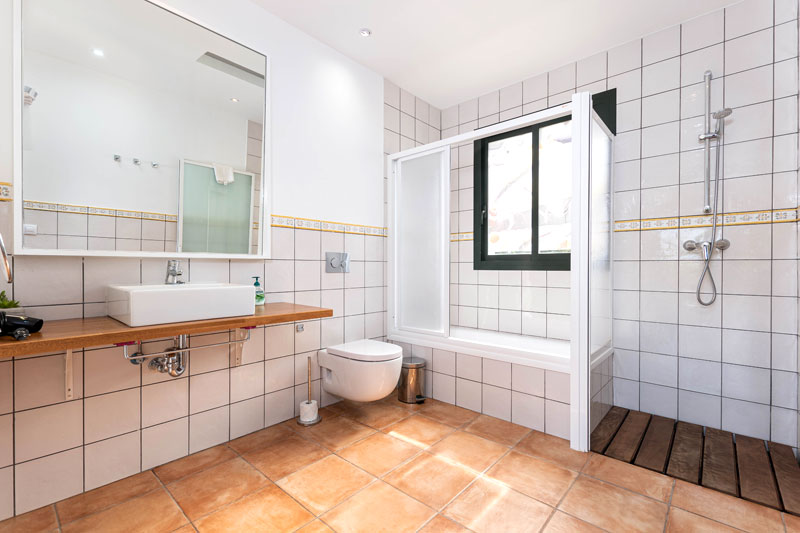 | Insgesamt gibt es 4 geräumige Schlafzimmer, die alle mit jeweils 2 Einzelbetten eingerichtet sind. 3 der Schlafzimmer verfügen über ein eigenes ensuite Bad mit Dusche. Es gibt ein viertes Badezimmer, das ebenfalls mit Dusche ausgestattet ist. Die zentrale Klimaanlage sorgt auch in den Schlafzimmern zu jeder Jahreszeit für angenehme Temperaturen. |