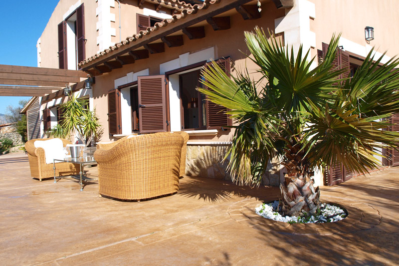 | Die große Terrasse am Haus ist mit bequemen Rattan Sesseln möbliert und bietet den idealen Platz, um am Morgen bei einem ersten Kaffee den atemberaubenden Weitblick auf das Tramuntanagebirge zu genießen. Aber auch zu jeder anderen Tageszeit kann man hier Ruhe finden, Sonne tanken und Pläne für einen neuen Urlaubstag schmieden. |