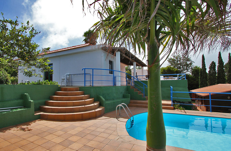Dieses Ferienhaus befindet sich gemeinsam mit drei weiteren kleinen Ferienhäusern auf einem großen Grundstück mit herrlichem Garten. Die Ferienhäusern sind durch den Garten voneinander getrennt, so dass allen Feriengästen die Privatsphäre sicher ist. Unterhalb des Grundstücks befindet sich ein 12 x 4 m großer Pool, der allen Gästen gemeinschaftlich zur Verfügung steht. Rund um das Ferienhaus laden eine große, möblierte Terrasse mit Grill und der üppig grünende Garten zum erholsamen Verweilen ein. Auf der Terrasse stehen Ihnen sowohl sonnige als auch schattige Plätze zur Verfügung. Ferner gibt es eine sonnige Dachterrasse.